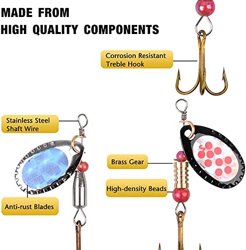 【Premium Components】 Trout spinner bait designed with a brass pointed treble hook, plated main body and stainless steel spindle, the brightly colored sleeves and quality blade provides continuous flash and vibration,great for bass fishing and trout fishing