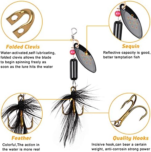 【Practical function】 The spinner lures can rotate in the water to make noise and ripple to attract fish, also it can reflect light rays in the water like little fish to attract big fish, so practical for your fishing