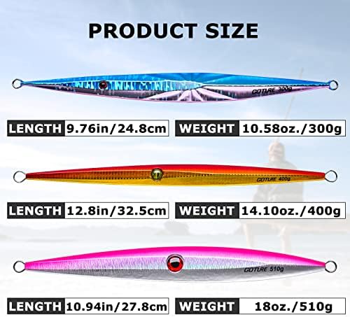 TARGET SPECIES: Our fishing jigs are suitable for both freshwater and saltwater. Suitable for a wide range of fish species, such as tuna, grouper, bluefin, yellowfin, salmon, sailfish, stripe bass, snapper, kingfish, and more.